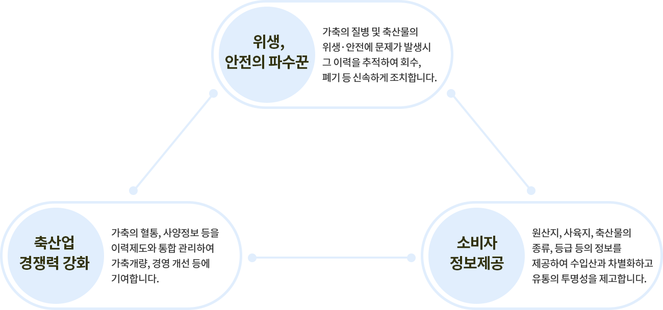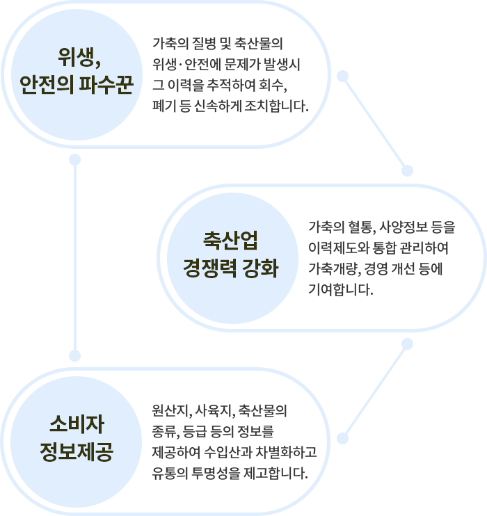국내산 가축과 축산물의 생산, 유통 단계별 정보를 기록, 관리, 공유하여